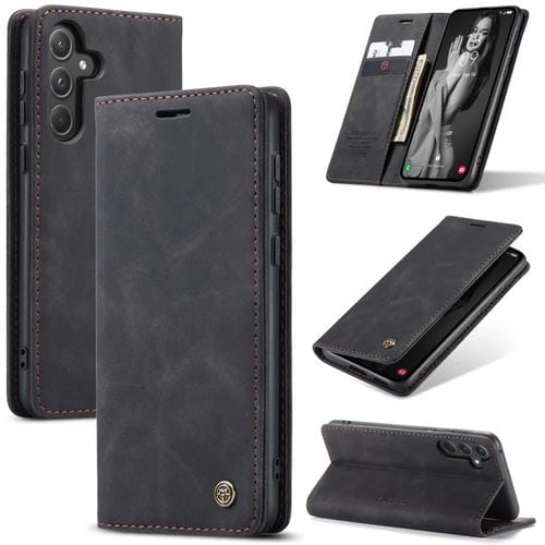 Funda para Teléfono Caseme 013 para Samsung Galaxy A55 5G Cuero Tapa Horizontal Multifuncional (Negro)