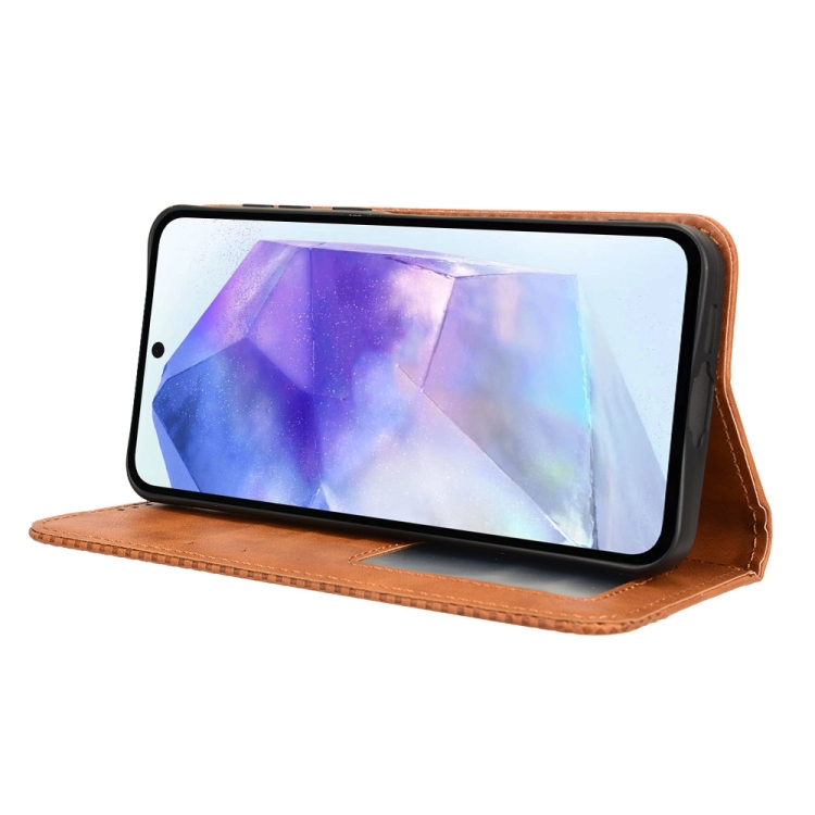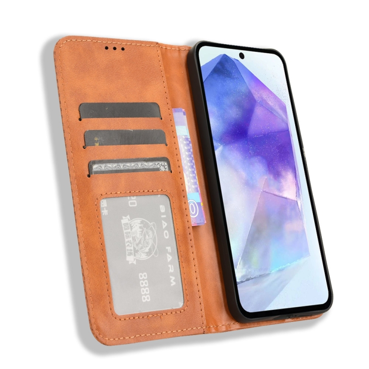 Funda para Teléfono Samsung Galaxy A55 5G Cuero Textura Retro Hebilla Magnética (Marrón)