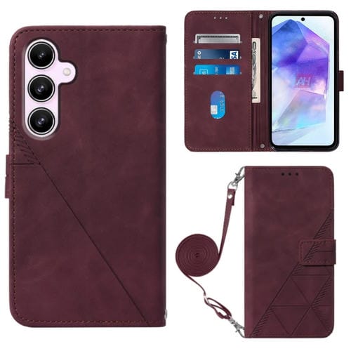 Funda para Samsung Galaxy A55 Crossbody Cuero con Tapa en Relieve 3D (Rojo Vino)