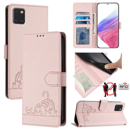 Estuche para Teléfono Samsung Galaxy A81 Note10 Lite M60S Cuero Rfid Patrón En Relieve Cordón (Rosa)