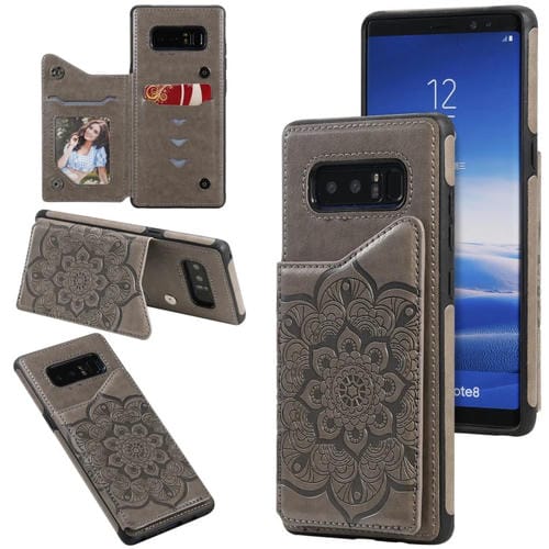 Estuche Protector Samsung Galaxy Note 8 Patrón Estampado de Flores con Soporte y Ranuras para Tarjetas (Gris)