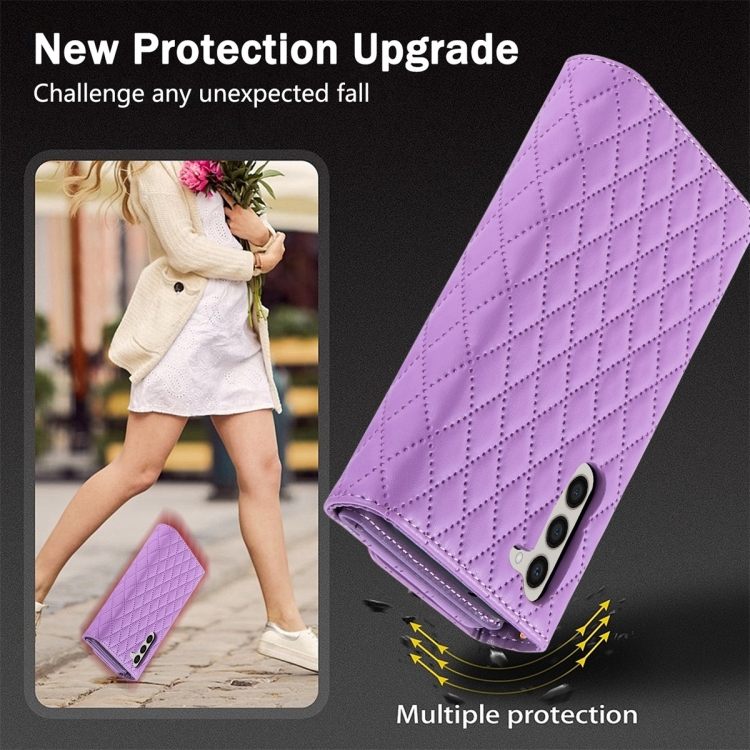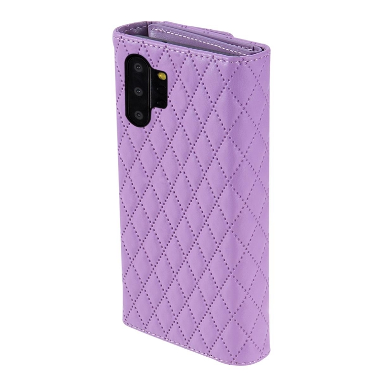 Estuche para Teléfono Samsung Galaxy Note10 Cuero Rómbico con Billetera MultiTarjeta con Cremallera (Púrpura)