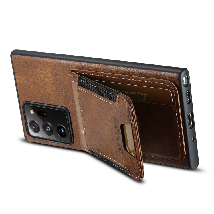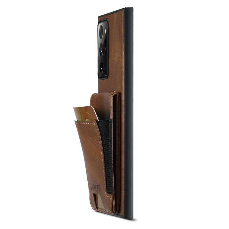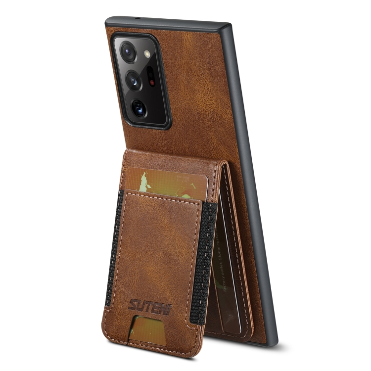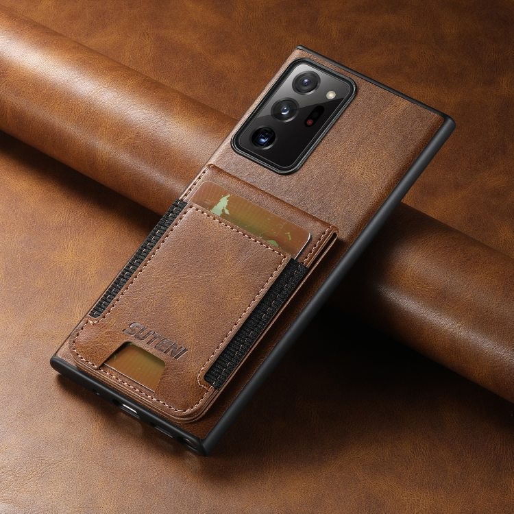 Funda para Teléfono Samsung Galaxy Note20 5G Suteni H03 con Soporte y Billetera de Cuero con Cera de Aceite (Marrón)