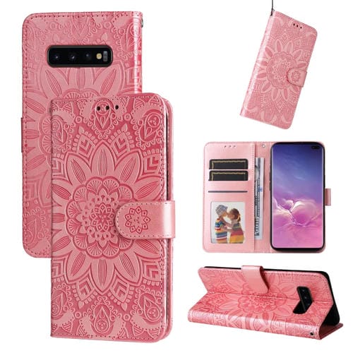Estuche para teléfono Samsung Galaxy S10+ Cuero Estampado Girasol en Relieve (Rosa)