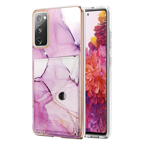 Estuche para Teléfono Samsung Galaxy S20 FE 5G con Ranura para Tarjeta Imd y Patrón de Mármol (Oro Rosa Púrpura)