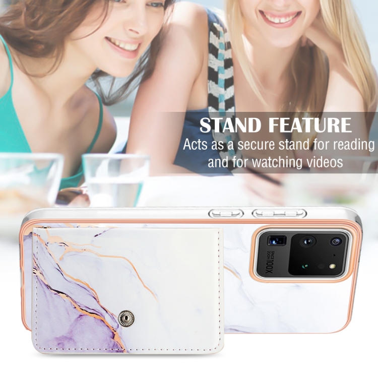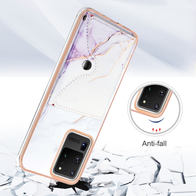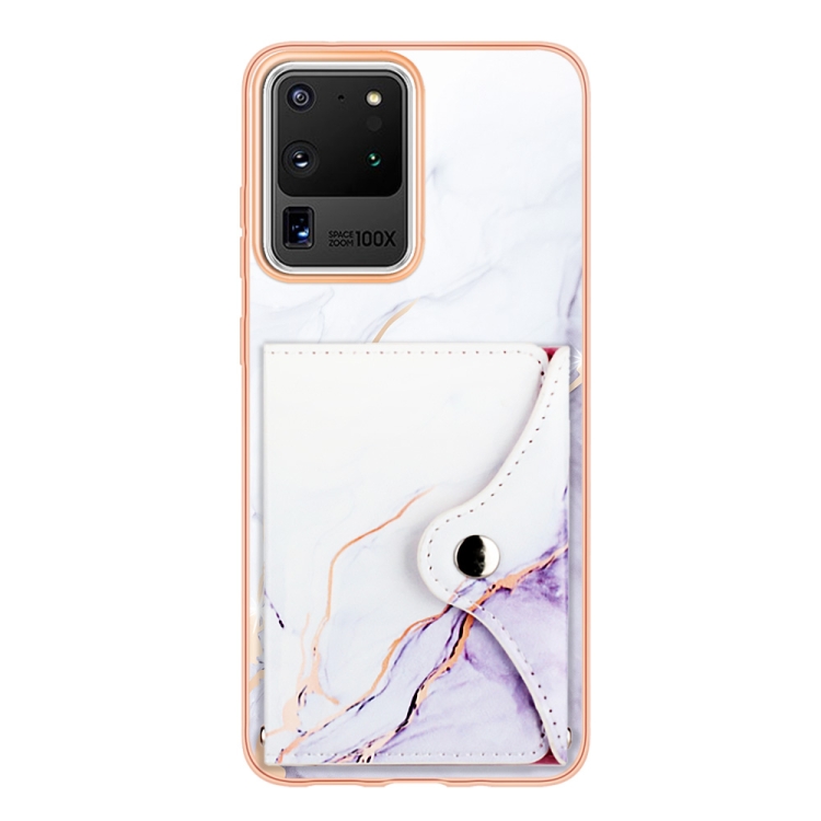 Estuche para Teléfono Samsung Galaxy S20 Ultra con Ranura para Tarjeta Imd Patrón Mármol (Blanco y Morado)