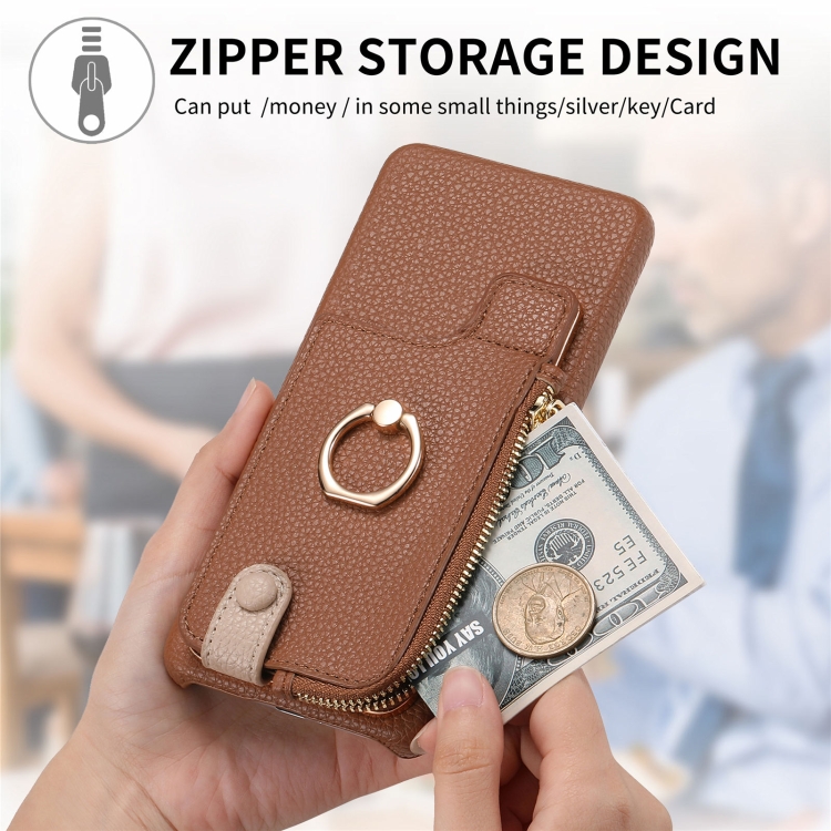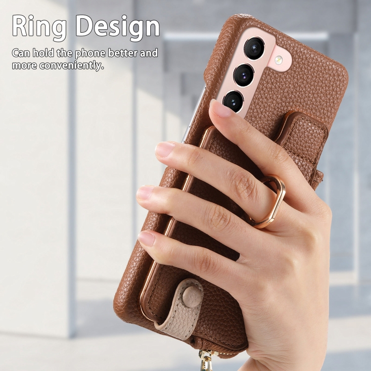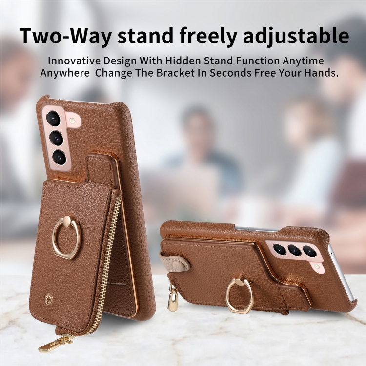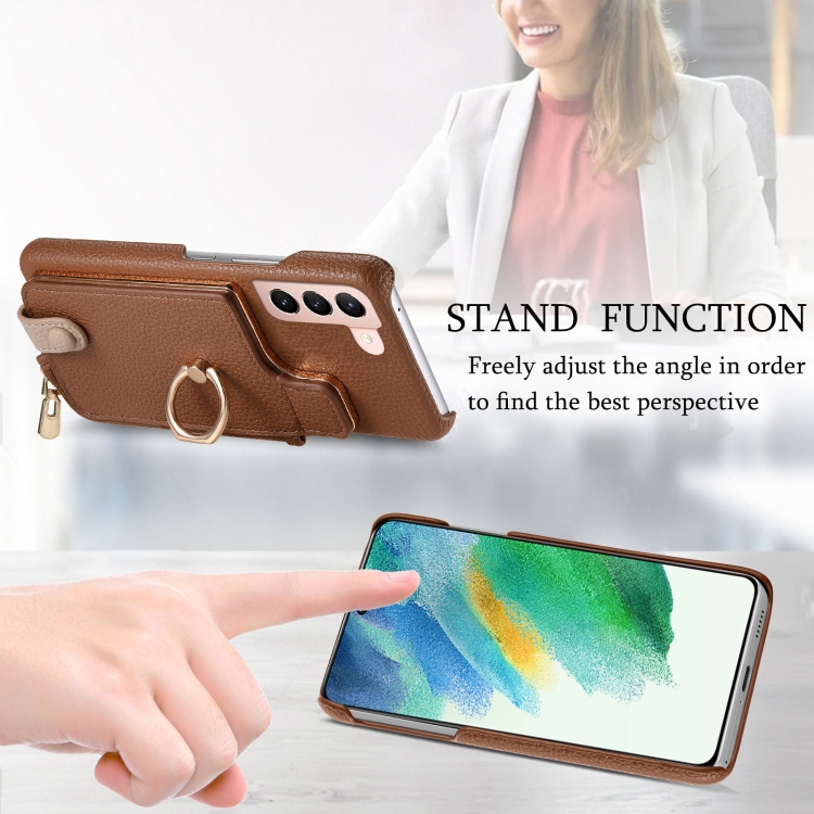 Funda para Samsung Galaxy S21 5G Litchi Leather Oil Edge Ring Zipper Wallet Back (Marrón)