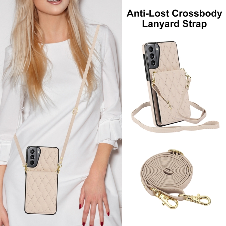 Estuche Cruzado para Teléfono Samsung Galaxy S21 5G Ym015 con Tarjeta Rómbica Rfid (Blanco)