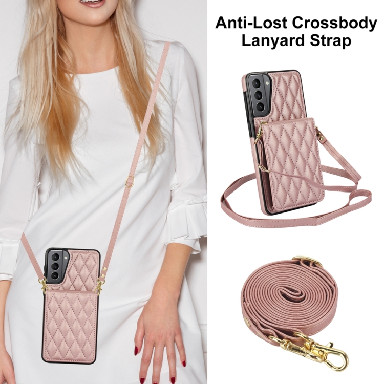 Estuche Cruzado para Teléfono Samsung Galaxy S21 5G Ym015 con Tarjeta Rómbica Rfid (Oro Rosa)