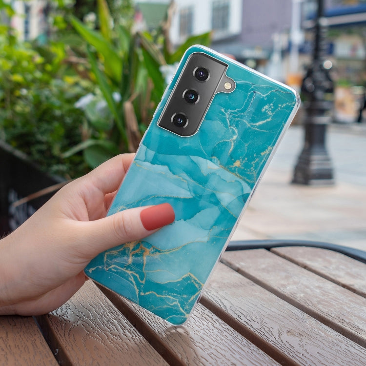 Para Samsung Galaxy S21 FE 5G IMD Marble Pattern TPU Phone Case (Verde)