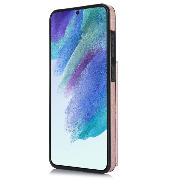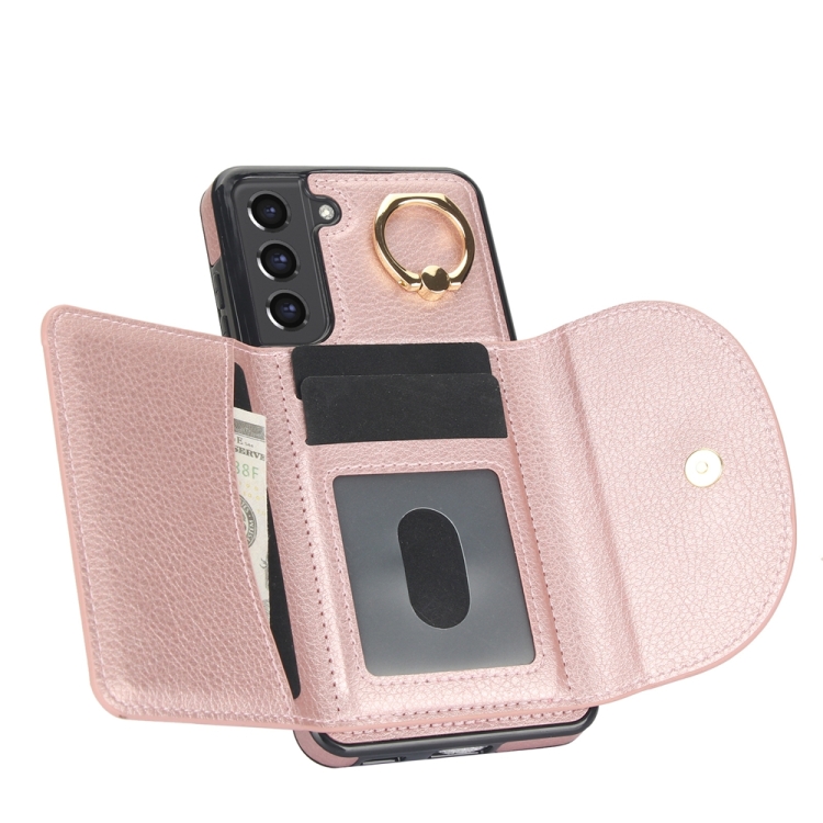 Funda para Teléfono Samsung Galaxy S21 FE 5G Ym007 con Soporte para Anillo y Tarjeta (Oro Rosa)