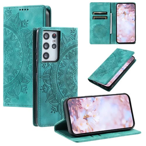 Funda para Samsung Galaxy S21 Ultra 5G Totem Cuero Magnética En Relieve (Verde)