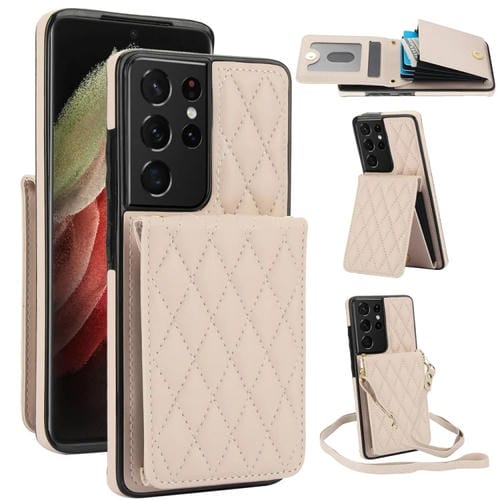 Funda Cruzada para Samsung Galaxy S21 Ultra 5G Ym015 con Bolsa para Tarjeta Rómbica Rfid (Blanco)