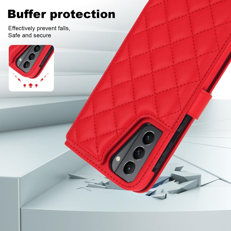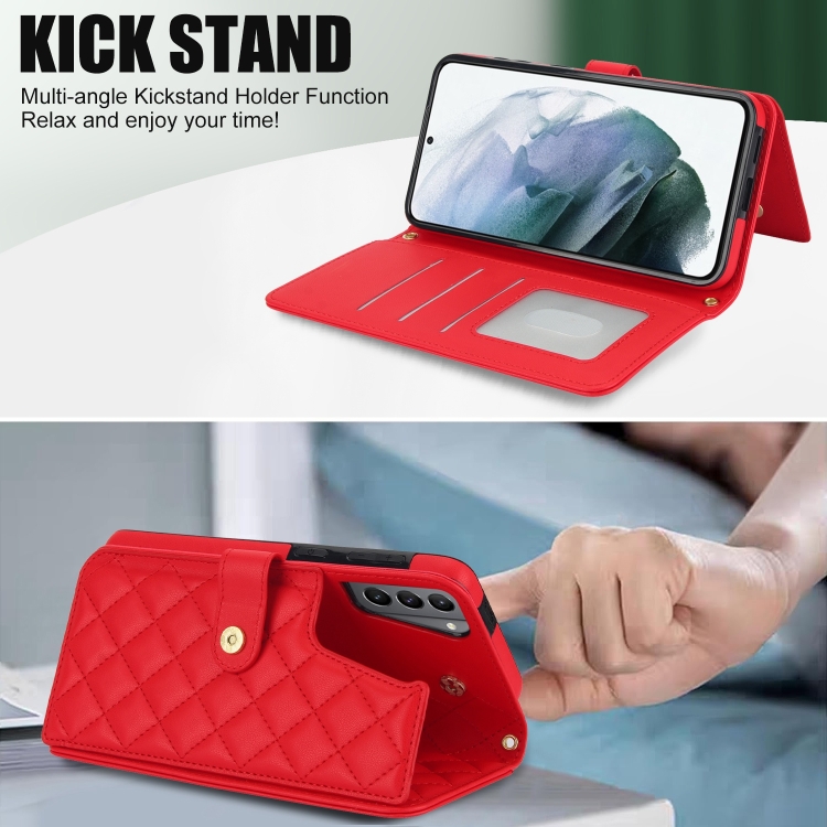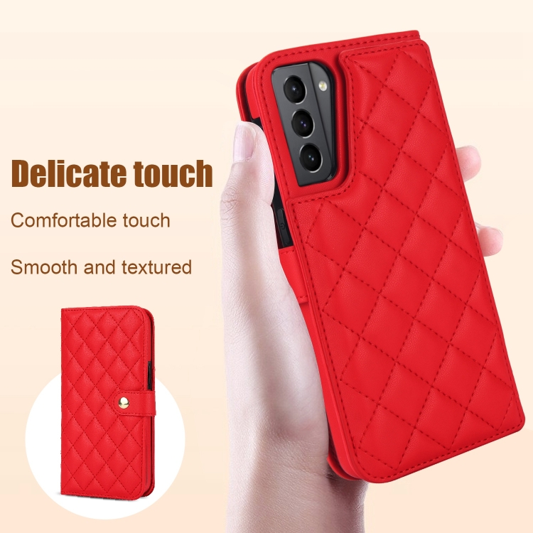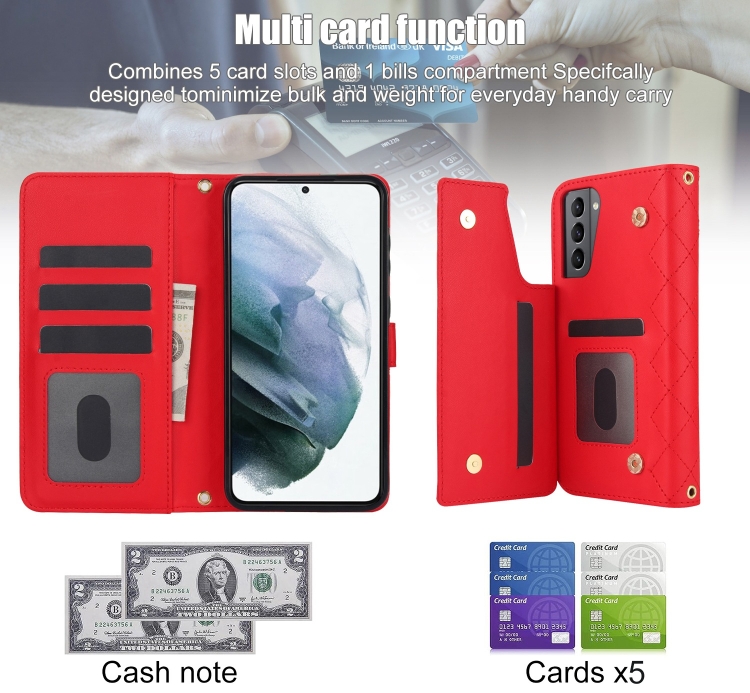 Estuche para Teléfono Samsung Galaxy S22 + 5G Crossbody Cuero Rómbico Multifunción (Rojo)