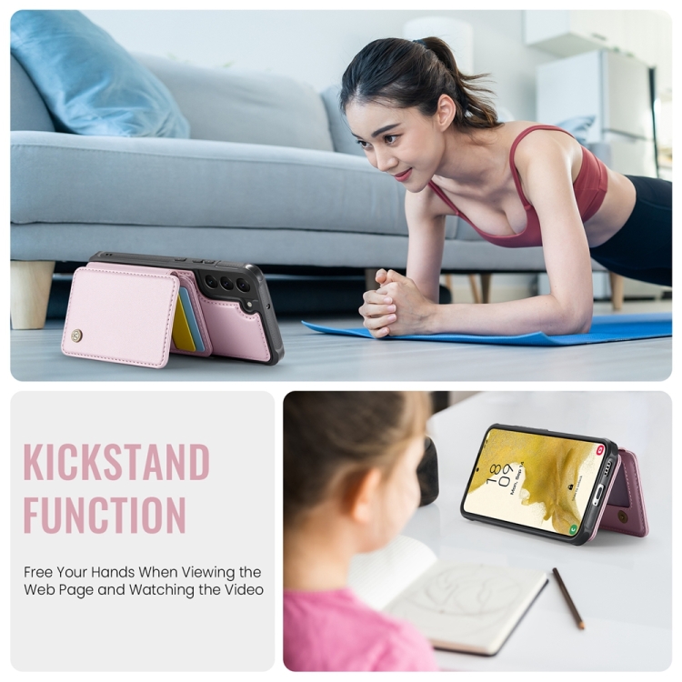 Estuche para teléfono Samsung Galaxy S22+ 5G Jeehood J05 cuero RFID estilo magnético empresarial (Rosa)