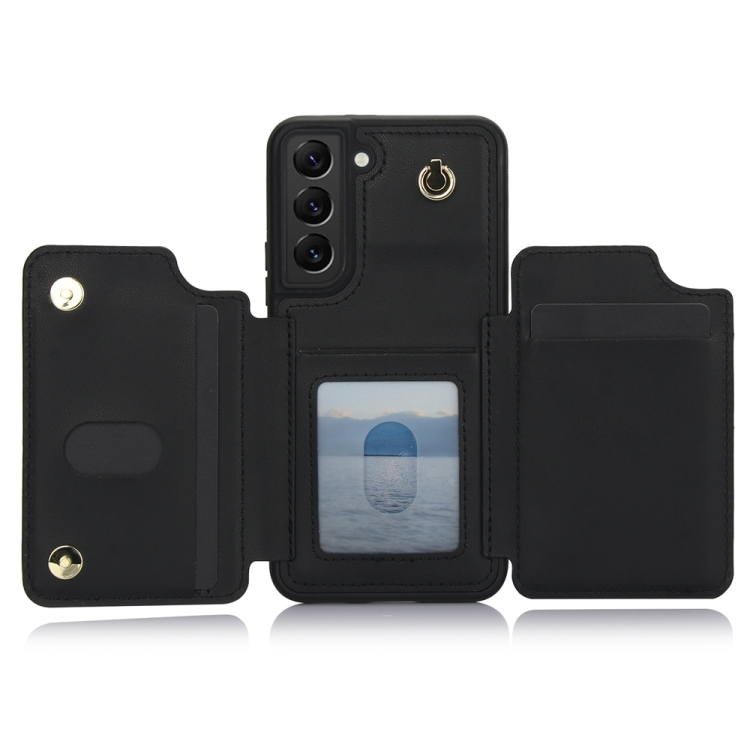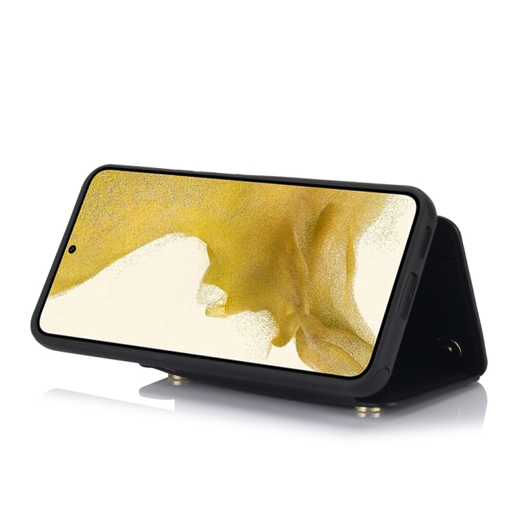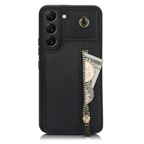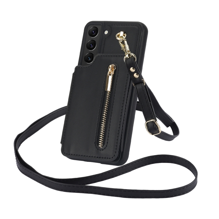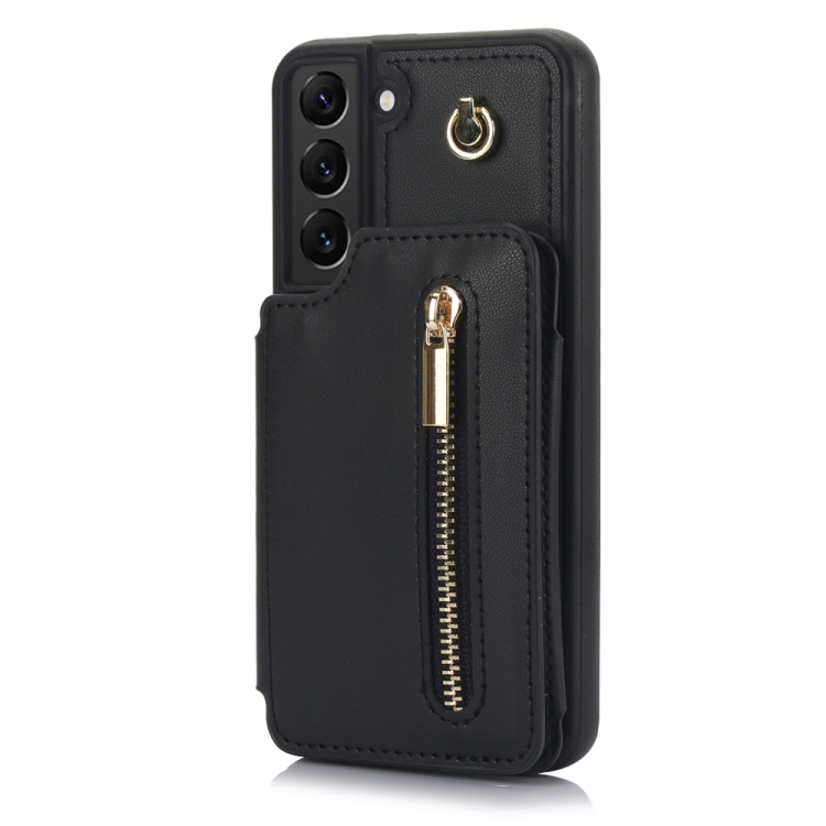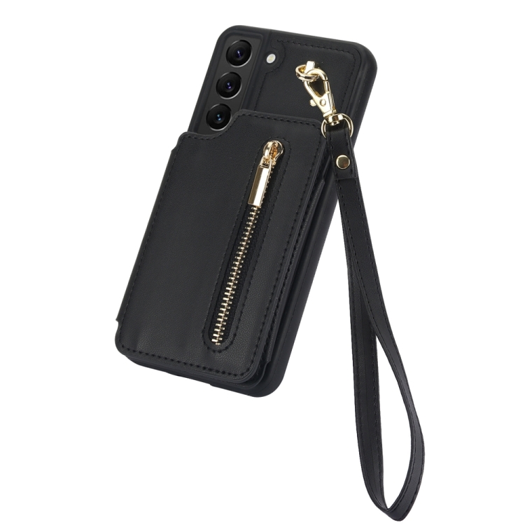 Estuche para Teléfono Samsung Galaxy S22 + 5G Ym006 con Bolsa para Tarjetas y Cremallera con Cordón Doble (Negro)