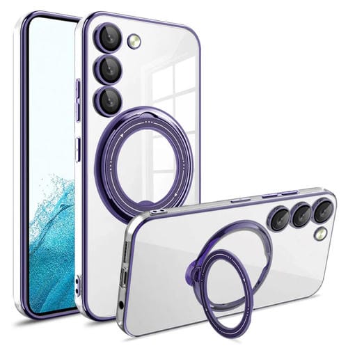 Estuche para Teléfono Samsung Galaxy S22 + Galvanoplastia Magsafe Soporte de Rotación 360 Grados a Prueba de Golpes (Púrpura Oscuro)