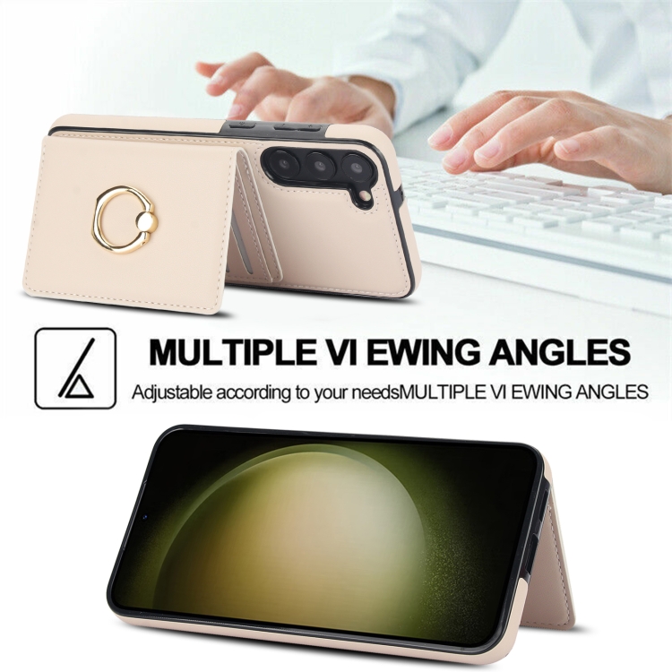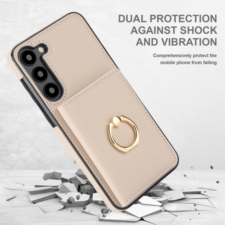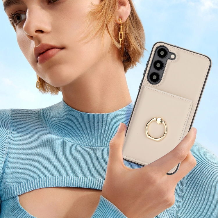 Estuche para teléfono Samsung Galaxy S23 5G con soporte para anillo y tarjeta antirrobo Rfid (Blanco)