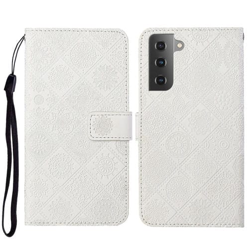 Estuche para Teléfono Samsung Galaxy S23+ 5G Cuero Patrón En Relieve Estilo Étnico (Blanco)