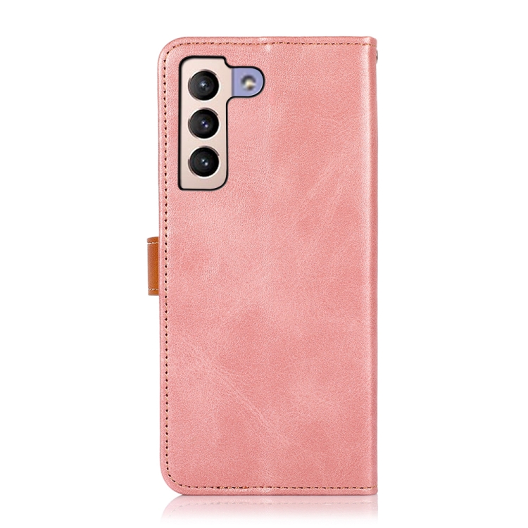 Estuche para Teléfono Samsung Galaxy S23+ Khazneh Cuero Textura Piel de Vaca Dos Colores (Oro Rosa)
