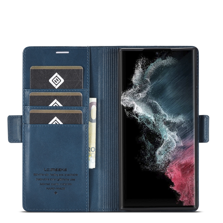 Estuche para teléfono Samsung Galaxy S23 Ultra 5G Lc.Imeeke PU + TPU Cuero (Azul)
