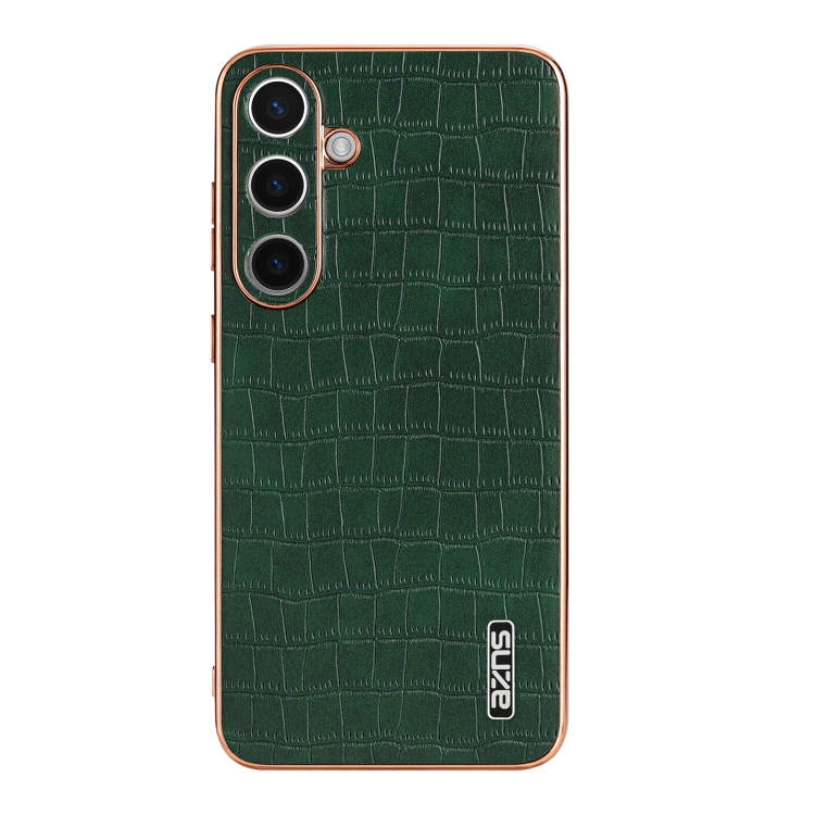 Estuche para Teléfono Samsung Galaxy S24 + 5G Azns Textura de Cocodrilo Marco Galvanizado (Verde)