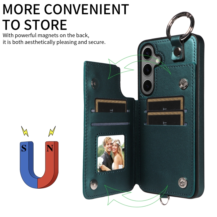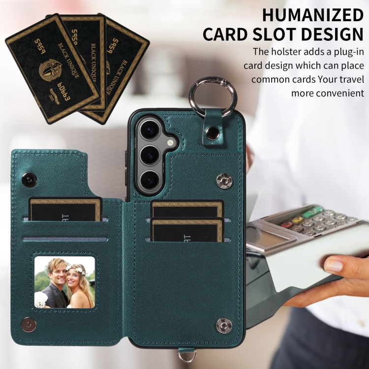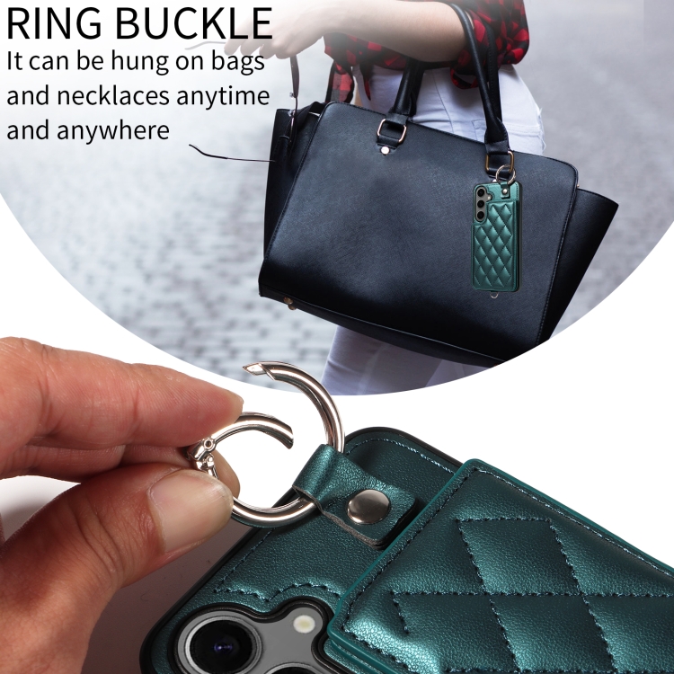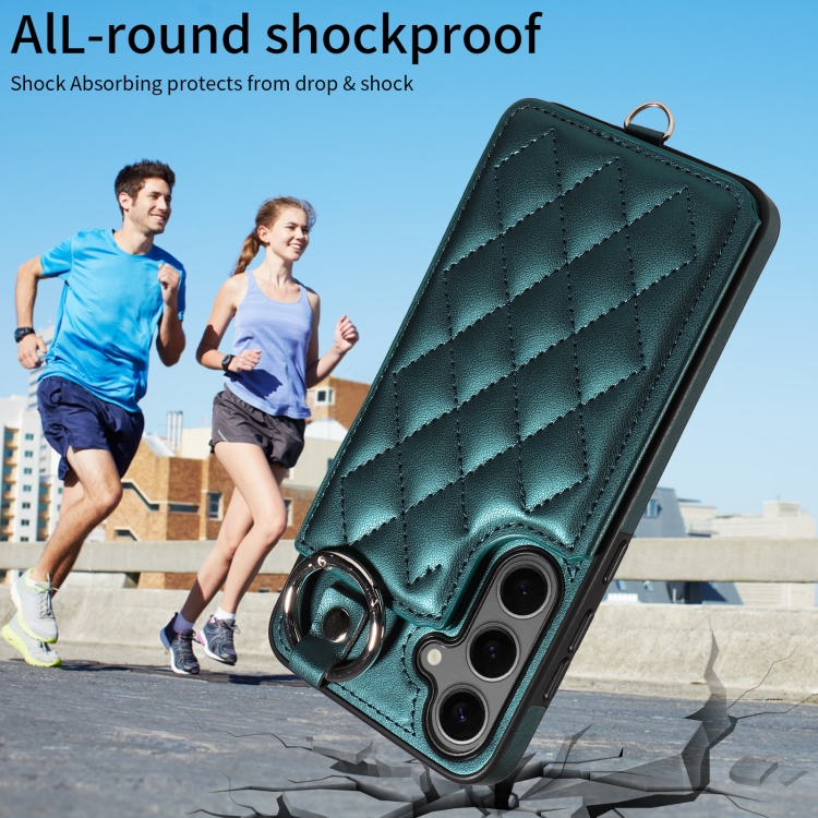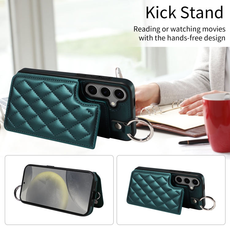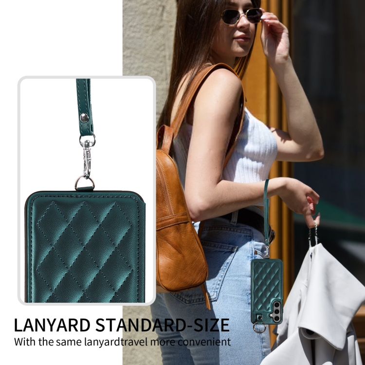 Estuche para Teléfono Samsung Galaxy S24 + 5G con Bolsa para Tarjeta Textura Rómbica y Cordón Corto (Verde)