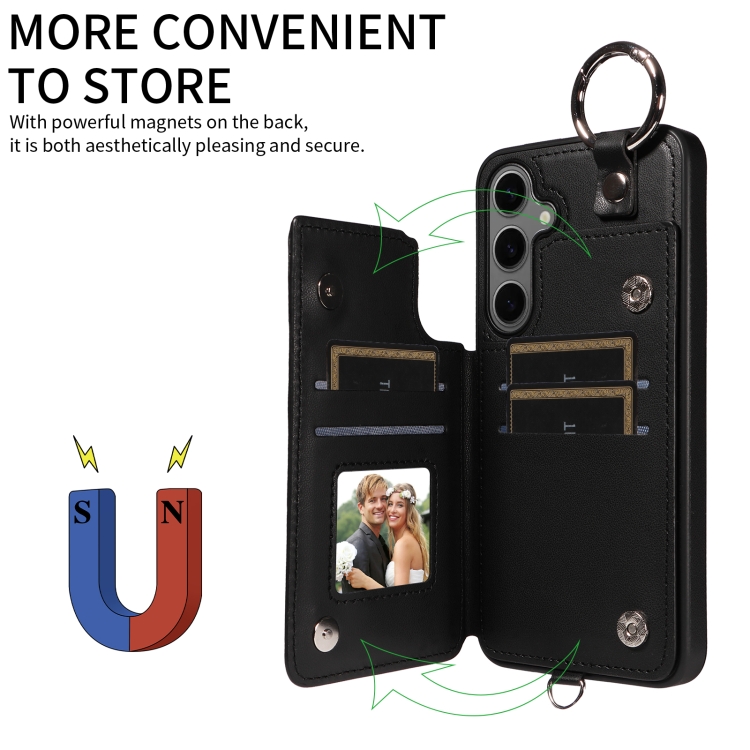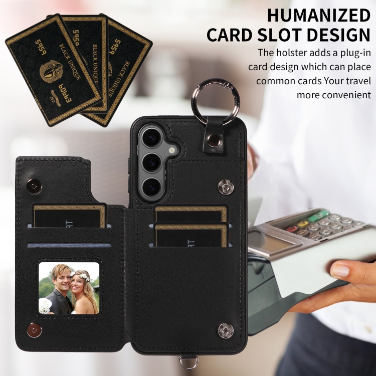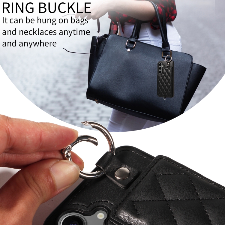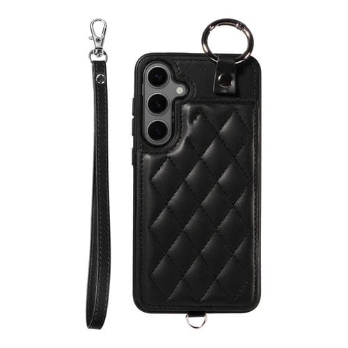 Estuche para Teléfono Samsung Galaxy S24 + 5G con Bolsa para Tarjetas Textura Rómbica y Cordón Corto (Negro)