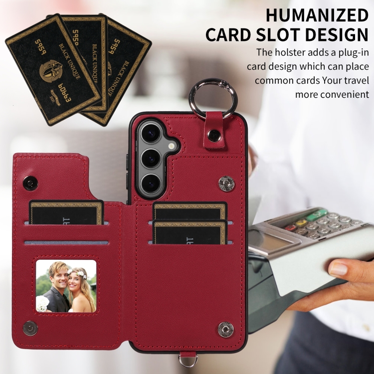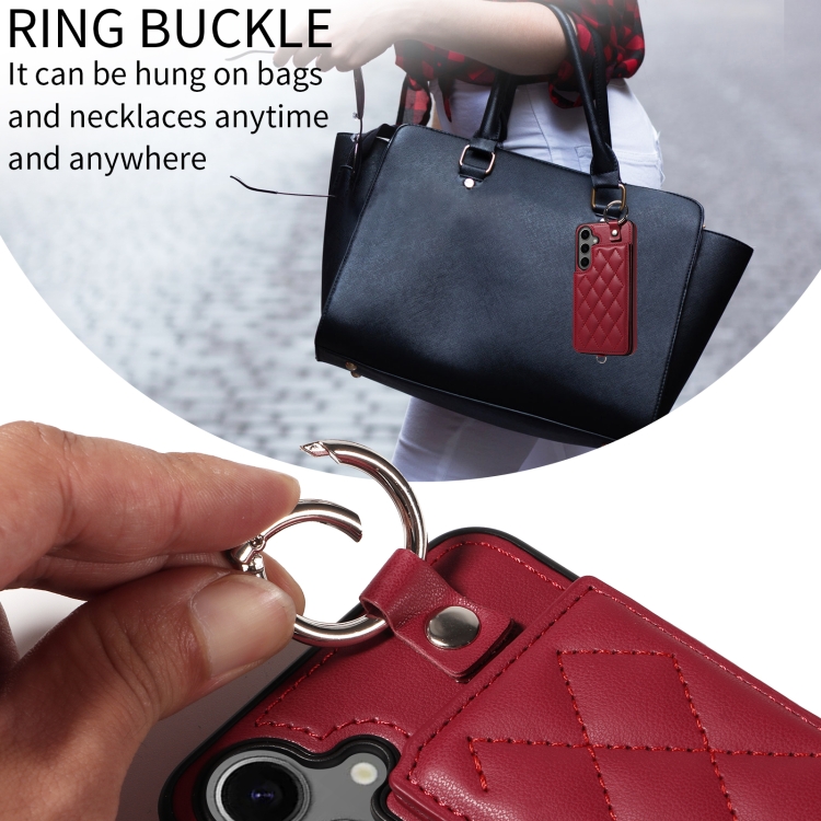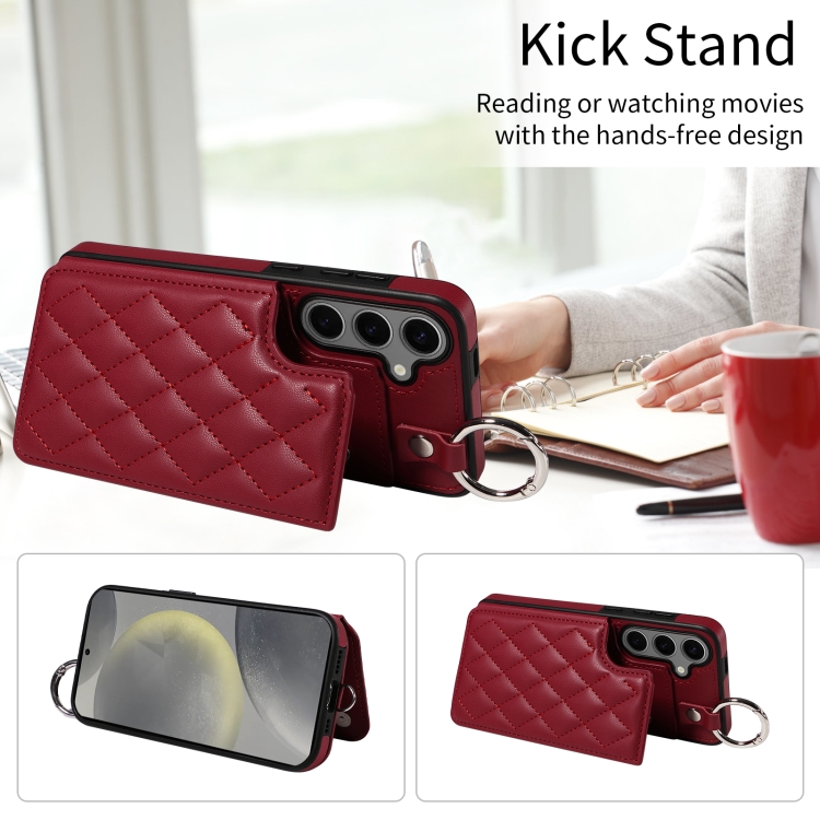 Estuche para Teléfono Samsung Galaxy S24 + 5G con Bolsa para Tarjetas Textura Rómbica y Cordón Corto (Rojo Vino)