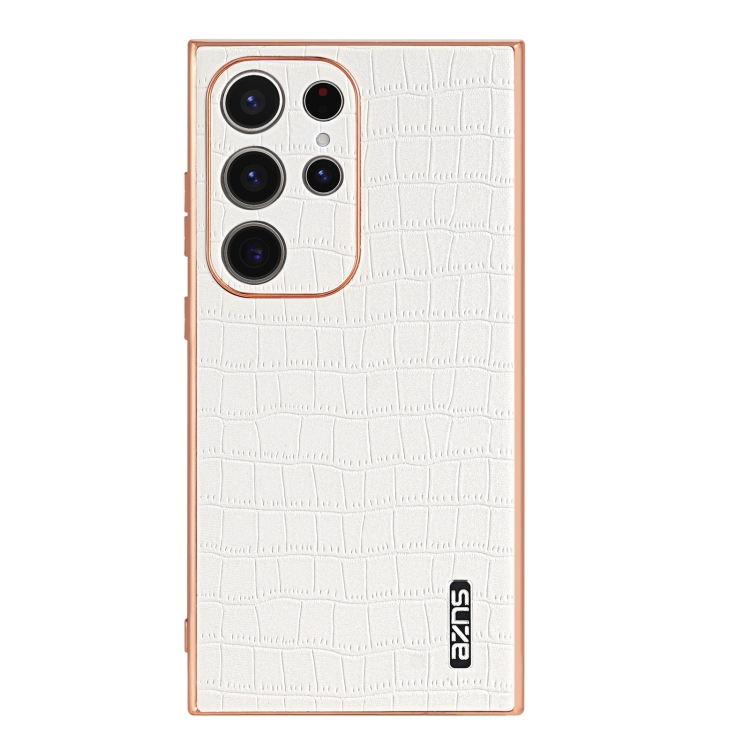 Estuche para teléfono Samsung Galaxy S24 Ultra 5G Azns con textura de cocodrilo y marco galvanizado (Blanco)