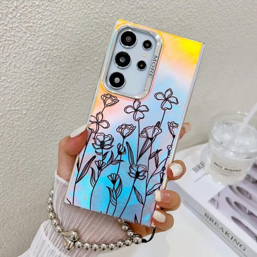 Estuche para Teléfono Samsung Galaxy S24 Ultra 5G con Flor Láser Galvanizada y Correa para Muñeca
