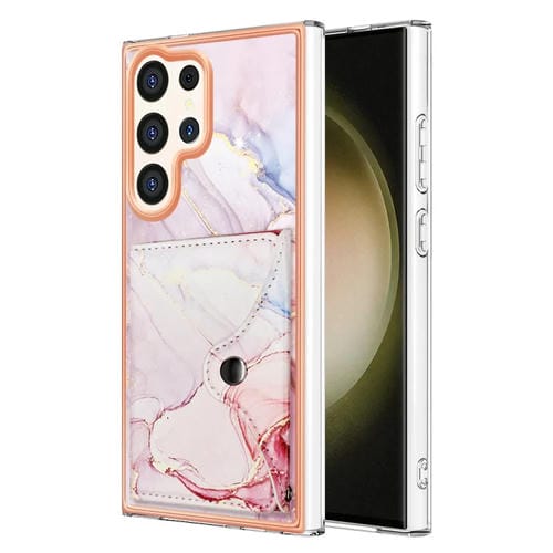Estuche para Teléfono Samsung Galaxy S24 Ultra 5G con Ranura para Tarjeta Imd y Patrón de Mármol (Oro Rosa)