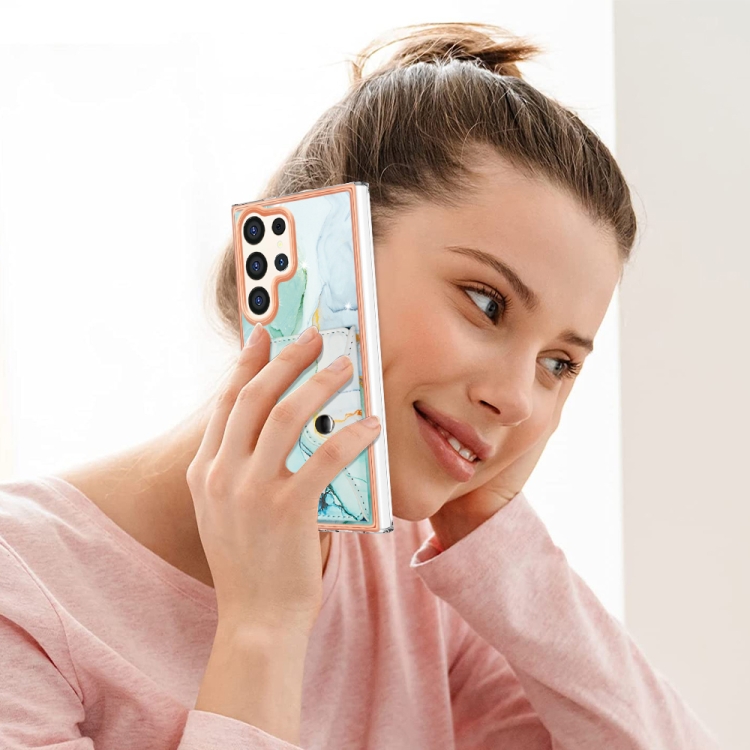 Estuche para Teléfono Samsung Galaxy S24 Ultra 5G con Ranura para Tarjeta Imd Patrón Mármol (Verde)
