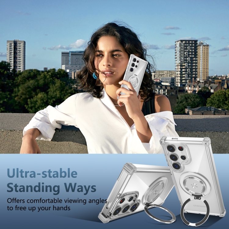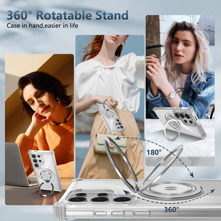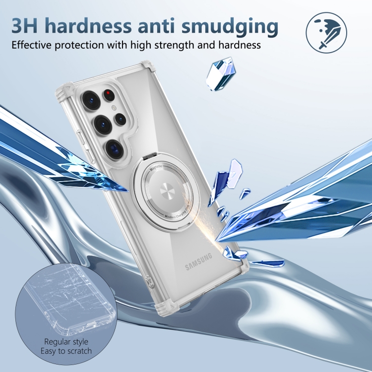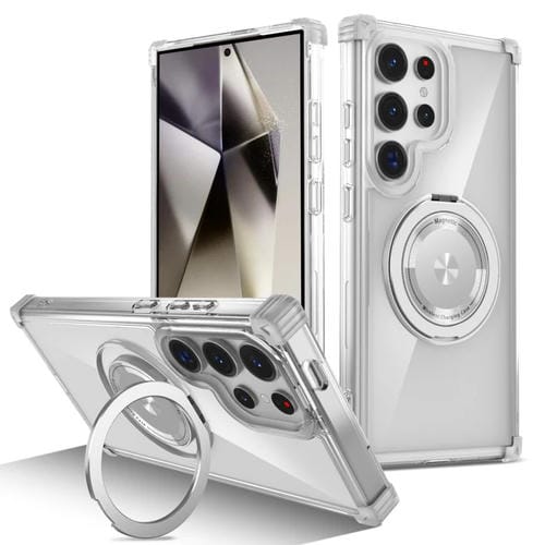 Estuche para teléfono Samsung Galaxy S24 Ultra 5G Gold Shield Cd Pattern magnético con soporte giratorio (Transparente)