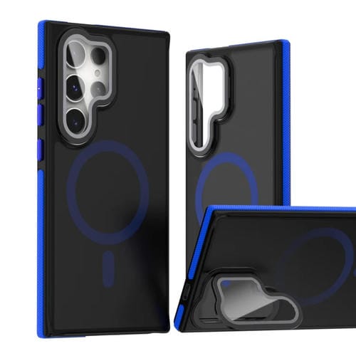 Estuche para Teléfono Samsung Galaxy S24 Ultra 5G Magsafe con Película de Lente y Soporte Plegable (Azul)