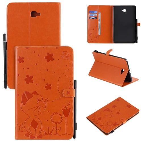 Funda Protectora de Cuero Samsung Galaxy Tab A10.1 T580 a Prueba de Golpes con Soporte y Ranuras (Naranja)