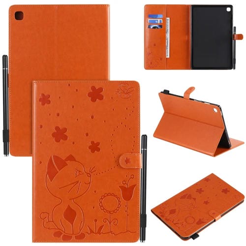 Funda Protectora de Cuero Samsung Galaxy Tab S5E T720 T725 con Soporte y Ranuras (Naranja)