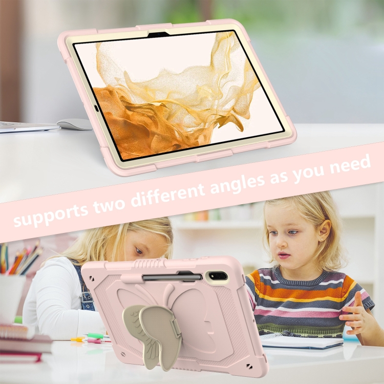 Funda Tablet Samsung Galaxy Tab S8+ S7+ Butterfly Kickstand Resistente (Beige + Rose Pink)