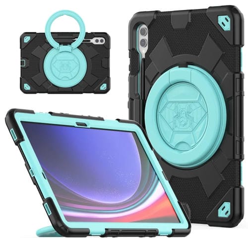 Pour Samsung Galaxy Tab S9 + Spider Rotation Handle PC Silicone Hybrid Tablet Case (noir bleu clair)
