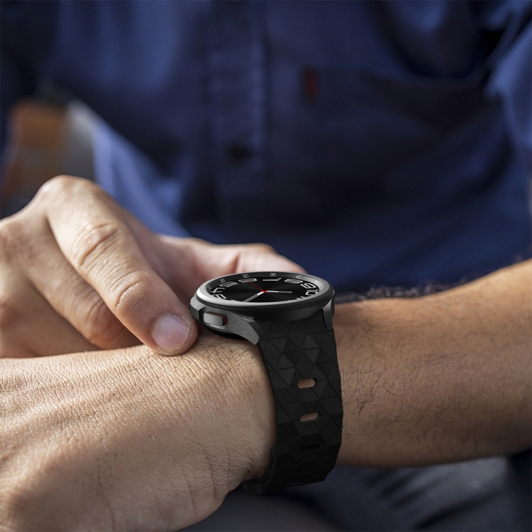 Correa de Silicona para Samsung Galaxy Watch 6/6 con Hebilla Inversa y Patrón de Fútbol Clásico (Negro)