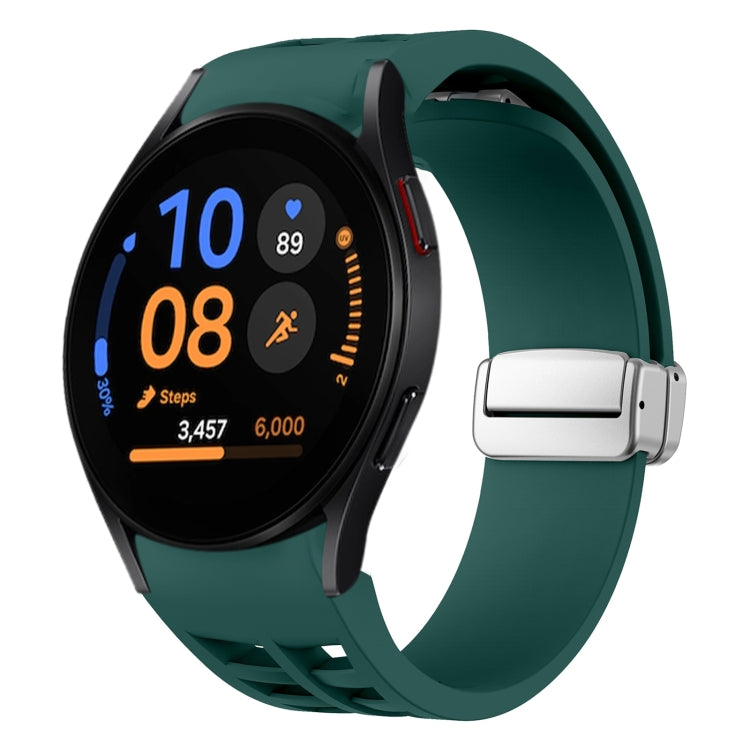 Correa de Silicona para Samsung Galaxy Watch FE 40mm Richard con Hebilla Plateada Plegable Magnética (Verde Oscuro)