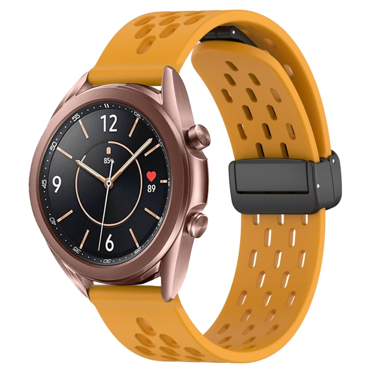 Correa de Reloj de Silicona para Samsung Galaxy Watch3 41mm 20mm con Cierre Magnético Plegable (Amarillo)