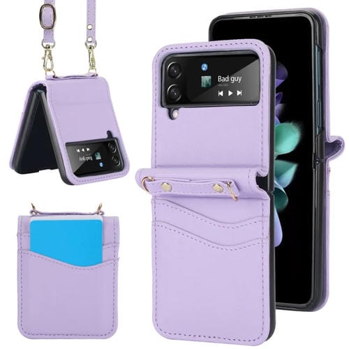 Estuche plegable para Samsung Galaxy Z Flip4 con ranuras para tarjetas duales (Púrpura)