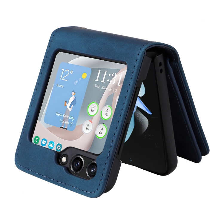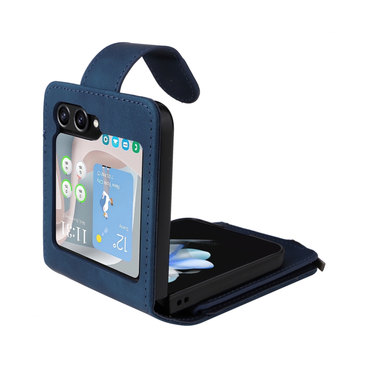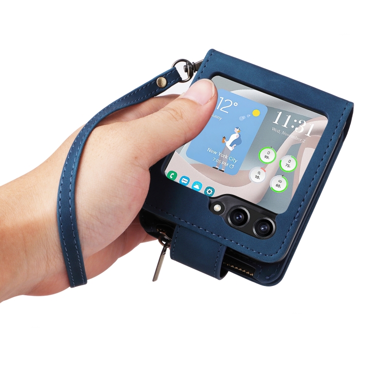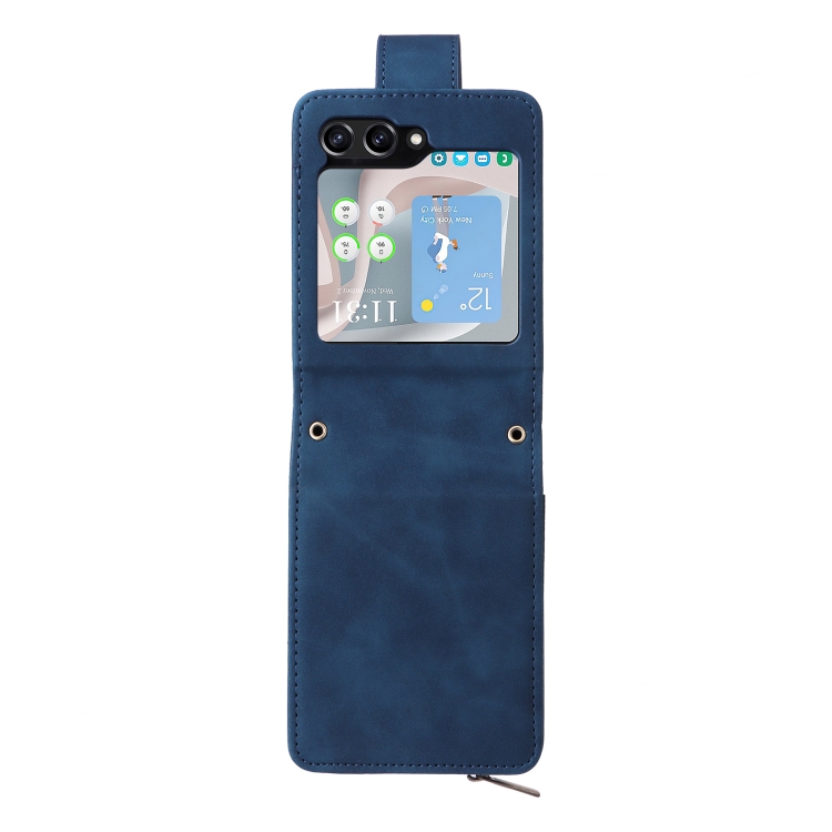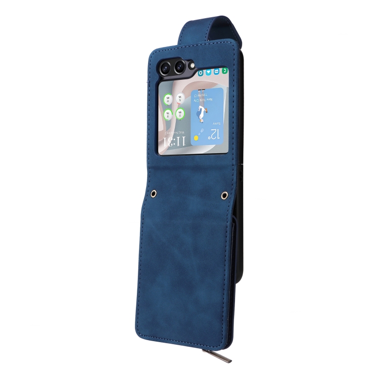 Funda de Cuero Crossbody para Samsung Galaxy Z Flip5 5G con Ranura para Tarjetas y Cremallera (Azul Oscuro)