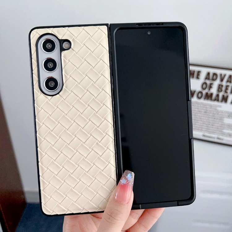 Funda para Teléfono Plegable Samsung Galaxy Z Fold5 de PU con Textura Tejida (Dorado)
