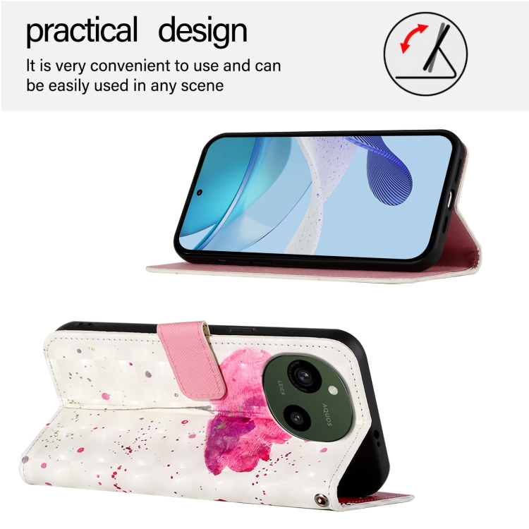 Funda para Sharp Aquos 9 de Cuero con Tapa Horizontal y Pintura 3D (Flor)