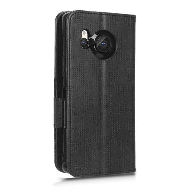 Funda de Cuero para Sharp Aquos R8 con Patrón de Triángulo Simétrico (Negro)