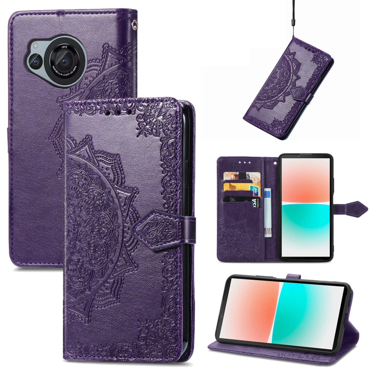 Funda de Cuero para Sharp Aquos R8 Mandala Flower en Relieve (Púrpura)