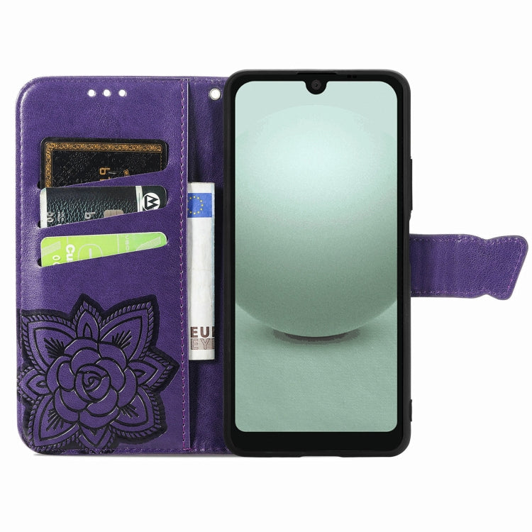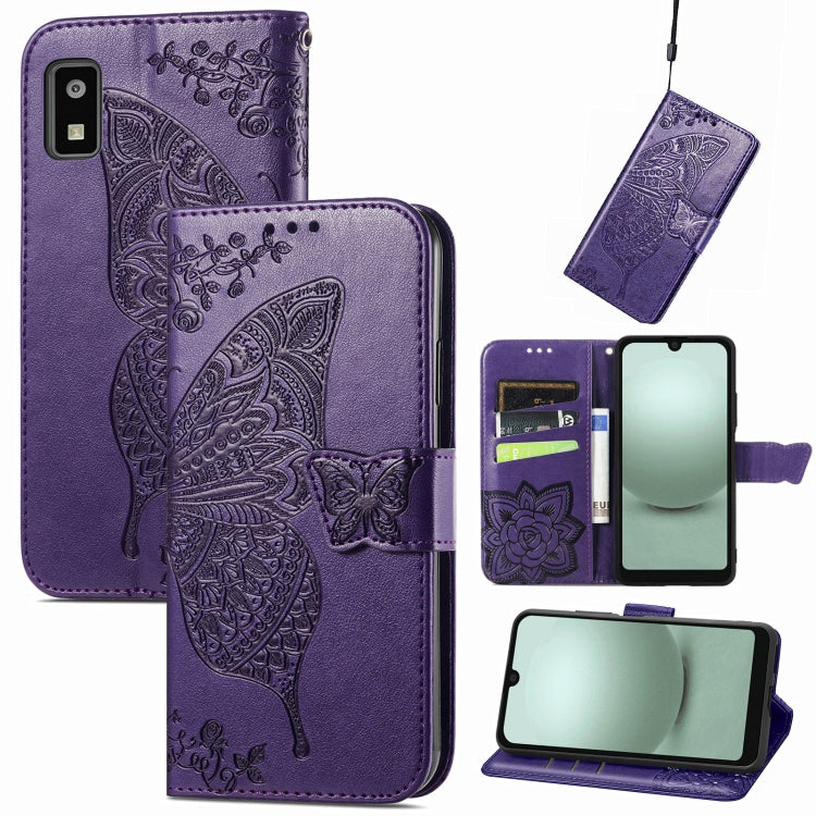Funda de Cuero para Sharp Aquos Wish 3 Butterfly Love Flower en Relieve (Púrpura)