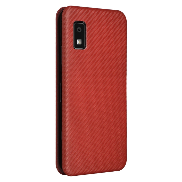 Funda de Cuero para Sharp Aquos Wish 3 con Textura de Fibra de Carbono (Marrón)